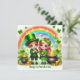 Carte de vacances heureuse de la Saint-Patrick avec un garçon et une fille mignons, pots d'or, trèfles et un arc-en-ciel