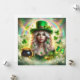 Carte de vœux de la Saint-Patrick avec une dame portant un chapeau de lutin, un pot d'or, des trèfles, des papillons et un arc-en-ciel