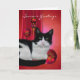 Carte de Noël élégante avec le chat et les ornements noirs et blancs