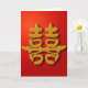 Carte de vœux de mariage à double bonheur de calligraphie chinoise sur fond rouge auspice