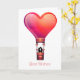 Carte de vœux de félicitations de mariage avec des graphiques d'une montgolfière en forme de cœur, avec les silhouettes d'un couple dessus. Le texte rouge peut être personnalisé pour dire ce que vous voulez.