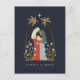 Cette carte de Noël présente une illustration de la sainte famille encadrée par une paire de palmiers, l'étoile de Bethléem et des lys blancs. Ce design intime capture le miracle et l'intimité de la naissance de Jésus.