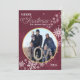 Envoyez vos vœux de Noël à votre famille et à vos amis avec cette carte photo Merry Christmas moderne et élégante. Comporte des flocons de neige et une couleur vin rouge festive.