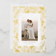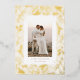 De délicats dessins au trait de botanique hivernale créent un cadre pressé en feuille métallique sur cette élégante carte de vœux à photo unique. Pin, feuilles persistantes, baies, feuillage.