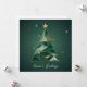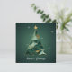 Une carte de Noël élégante et élégante, avec un arbre géométrique abstrait de forme triangulaire en dégradé de vert émeraude, de sauge et d'or métallique. Des lignes cramponnées et des flocons de neige minimalistes sur un arrière - plan blanc apportent une touche contemporaine. L'élégante sans-serif texte 'Bonnes Fêtes complète cette carte de vacances design-forward.