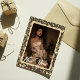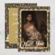 Partagez la joie pendant la période des fêtes avec notre carte de vœux festive à cadre photo décoratif. Le design présente des décorations de Noël en arrière-plan dans un style audacieux et élégant. La photo est placée dans un cadre photo doré décoratif. Personnalisez avec votre photo et votre texte au verso.