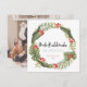 Cette carte de Noël hawaïenne chic "mele kalikimaka" présente un fond blanc avec une couronne de verdure tropicale et de baies rouges. Le verso présente votre photo. Personnalisez-le selon vos besoins. Vous pouvez trouver des produits assortis dans ma boutique.
