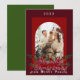 Carte de vœux de Noël, fond de couleur rouge cerise et vert nature avec QR code pour les réseaux sociaux ou site web. Ajoutez votre propre photo de famille ou de magasin. Peut également être ajouté à un cadeau.