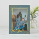 Carte de vœux simple mais élégante sur le thème du Nouvel An avec photo. Cadre de photographie conçu pour accueillir une photo de famille ou de groupe encadrée par un double cadre doré jaune doré. Fond gris avec paillettes dorées. Texte « Nouvel An » en police simple jaune sans empattement pouvant être personnalisé avec un message de vacances différent au verso
