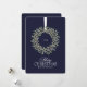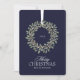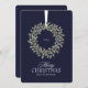 Une carte classique de Noël bleu marine avec une couronne de fête sur le devant. L'année peut être incluse ou supprimée, et le texte permet votre propre nom de famille. Sur le dos, vous pouvez garder les souhaits de vacances élégants fournis ou les remplacer par votre propre message personnel. Une carte Joyeux Noël intemporelle pour partager joie et chaleur en cette période de fêtes.