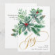 Carte de vœux de Noël branche de houx à baies JOY