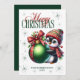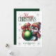 Envoyez vos vœux chaleureux pour les fêtes avec cette adorable carte de Noël Joyeux Noël représentant un manchot mignon avec un chapeau et une écharpe d'hiver à carreaux rouges et tenant un ornement vert festif enveloppé d'un ruban à carreaux rouges. Les flocons de neige scintillent autour de la scène joyeuse, ce qui en fait un choix parfait pour les salutations familiales. La carte peut être personnalisée avec le nom de votre famille et l'année, créant un charmant souvenir pour les fêtes.
