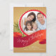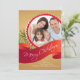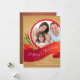 Carte de vœux de Noël élégante et stylée avec une bannière rouge portant les mots Joyeux Noël avec des branches de sapin et un cadre rond pour votre photo de vacances. Personnalisez avec vos informations et ajoutez votre photo de famille unique et vous êtes prêt à partir.