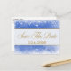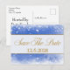 Cette carte postale d'invitation à sauver la date de Noël festive présente une palette de bleu, blanc et or - design flocon de neige. Veuillez ajouter le nom de votre entreprise/adresse de retour et la date de l'événement.