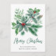 Carte de vœux de Noël festive avec branche de houx à baies.