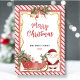 Envoyez vos vœux chaleureux de la saison avec cette charmante carte plate de Noël Joyeux Noël présentant un Père Noël aquarelle, un traîneau et une bordure à rayures de canne à bonbon. Le devant affiche le nom de votre famille et l'année, tandis que le verso comprend un message de vacances festif encadré par une illustration coordonnée. Parfait pour répandre la joie des fêtes aux amis et à la famille, cette carte de Noël personnalisée combine un charme traditionnel avec un design moderne. Ces cartes de vacances familiales personnalisées font un souvenir mémorable pour tous ceux sur votre liste.