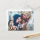 joyeux lettrage fin avec une image de vacances en famille et texte blanc.