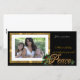 Carte de vœux de Noël Paix. Composition d'image et d'illustration avec texte doré en 3D, "Paix" sur fond noir avec cadre doré et accents de feuilles de houx. Personnalisez avec vos noms, photo et message.