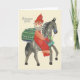 Carte de voeux de Noël polonaise vintage / Retro. Le Père Noël sur un âne ! Wesołych Świąt ! Joyeux Noël!