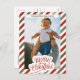 Carte postale de Noël, rouge vif et doré rayé, facile à personnaliser.