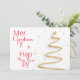 Les voeux de Noël approchent. C'est le moment de se rassembler pendant cette joyeuse fête, envoyez de beaux voeux de Noël à votre proche. Partagez votre moment de joie avec vos amis et votre famille avec une carte Joyeuses Fêtes. Que votre journée soit joyeuse et brillante à cette occasion. A propos de The Design : - Carte avant : arrière - plan blanc, texte de typographie conçu en couleur rouge et l'oeuvre d'arbre de Noël est de l'or élégant entouré d'étoiles et de points dorés. Carte inverse : la conception arrière - plan et textuelle est une combinaison de couleur rouge et blanche. Les espaces réservés textuels sont fournis pour les messages et salutations modifiables.