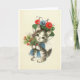Carte de voeux Retro / Vintage Noël. adorable chaton portant un casquette décoré de boules de Noël et portant un bouquet de fleurs de Noël ! Parfait pour amoureux des chats !