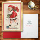 Cette carte de voeux de vacances présente une merveilleuse vintage Victorian était l'image d'une jeune fille habillée en rouge et blanc avec un bouquet de poinsettias rouges sur l'épaule. L'image est encadrée de rouge et d'or assortis. L'avant de la carte indique "To Wish You a Joyeux Noël", et le texte intérieur est entièrement personnalisable. Vous pouvez le laisser tel quel, ou le faire dire ce que vous voulez. Célébrez Noël à l'ancienne avec cette belle image d'art.