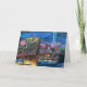 L'horizon de Manhattan avec des lumières de Tour jumelle et a la statue de la liberté sur le dos de la carte.