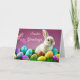 Cette carte de voeux de Pâques a un joli lapin et des oeufs photo imprimé. Semi-Gloss A un accueil spécial Pâques à l'intérieur. Customisez cette carte ou achetez comme prévu. Image sous licence
