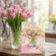 Carte de vœux de Pâques aux tulipes roses pour la