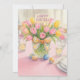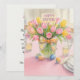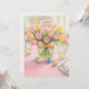 Cette carte de vœux présente une illustration aquarelle d'un arrangement de tulipes roses sur le devant, complétée par un message de vacances de Pâques au dos, ainsi qu'une ligne de signature pour la personnalisation. Conçue spécifiquement pour un usage familial, cette carte de Pâques permet un texte personnalisé pour répondre aux préférences individuelles. De plus, cette image de modèle polyvalente peut être appliquée à d'autres produits.