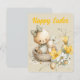Carte de vœux de Pâques décorée de fleurs, de rubans et d'œufs.