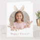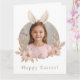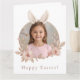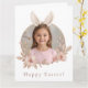 Envoyez vos vœux chaleureux de Pâques avec cette carte de vœux personnalisée avec la photo du lapin de Pâques. Avec une couronne florale de couleur pastel sur la couverture et un message réfléchi à l'intérieur, cette carte devient un objet de souvenir précieux pour les célébrations de Pâques.