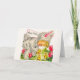Retro / Carte de voeux Pâques Vintage.. Adorable petit enfant portant un costume lapin et jouant avec des poussins de bébé! Joyeux Pâques !