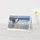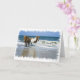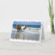 Deux chevaux se tenant sur une plage dans l'océan arrosent la carte de voeux.