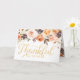Cette carte Fleur de rose Shabby Chic présente une jolie bordure aquarelle pêche et orange en haut. Les couleurs utilisées comprennent le vert olive, la rouille, la pêche, la prune et l'orange. Au centre se trouve un texte stylisé en or qui dit "Reconnaissant pour vous". L'intérieur comporte une bordure de rose florale en haut et en bas avec un espace pour que vous puissiez écrire votre propre message. Tout est affiché sur un fond blanc croustillant. Cette carte est coordonnée avec la collection Give Thanks Floral Pumpkin. Des doublures d'enveloppe assorties sont également disponibles. *Le lettrage doré n'est pas en feuille*