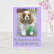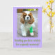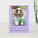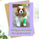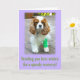 Carte de vœux féline avec un chien mignon avec un bandage vert autour de la patte, un design réconfortant créé pour envoyer des vœux de rétablissement, de réconfort et de bonne santé pendant la convalescence.