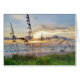 Coucher de soleil rouge sur la plage, sable, eau et avoine marine - retraite