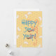 Une carte de Rosh Hashanah humoristique souhaitant une Joyeuse Année juive avec des shofars, du miel en rayon et des tranches de pomme.