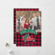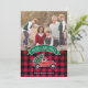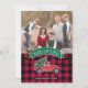 Partagez vos vœux de vacances de cette période de Noël avec une carte photo personnalisée unique. Ce design présente un camionnette rouge classique avec un sapin de Noël frais à l'arrière. Le texte ci-dessus sur une bannière verte indique "Joyeux Noël" et ci-dessous est le nom de votre famille à personnaliser sur un motif à carreaux rouge et noir de bison. Au dos de la carte, il y a un motif à carreaux rouge et noir de bison avec une pincée de neige. Remplacez par votre propre photo pour un design unique que votre famille et vos amis adoreront ! Conçu par les artistes ©Tim Coffey et Susan Coffey. Photographie © Storytree Studios, Stanford, CA.