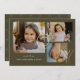 Nous vous présentons notre carte de vœux de fêtes élégante et moderne, Joy Collage Photo – une façon moderne et chic de capturer l'esprit des fêtes avec une touche de sophistication. Cette carte présente un fond vert foncé qui donne un ton riche et élégant et une typographie unique en faux or frappant, ce qui en fait un choix stylé pour envoyer des vœux chaleureux. Le mot "JOY" est affiché de manière élégante dans une typographie moderne et unique en faux or, ajoutant une touche de glamour et de festivité au design. Remarque : l'effet de feuille d'or est simulé dans l'œuvre d'art, et aucune feuille d'or réelle n'est ajoutée lors de l'étape d'impression. 3 de vos photos sont affichées dans une disposition de collage moderne, ce qui donne une carte de vœux de fêtes saisissante et stylée qui transmet vos salutations les plus chaleureuses. Le verso de la carte de Noël présente un design élégant coordonné, et vous pouvez ajouter du texte et des photos supplémentaires en utilisant le bouton "Modifier à l'aide de l'outil de conception" lors de la personnalisation de la carte. Célébrez la saison des fêtes avec style et sophistication en envoyant notre carte de vœux de fêtes élégante et moderne, Joy Collage Photo. Que vous partagiez la joie et l'amour de votre famille, que vous