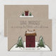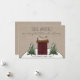 Carte de vœux de vacances rustique de campagne - Cette carte de Noël adorablement campagnarde représente une maison en forme de boîte à sel rouge (bourgogne) avec des arbres persistants de chaque côté sur une colline enneigée. La carte est sur un fond de papier kraft. La carte comporte également un vœu de Noël au verso. La carte est personnalisée avec votre nom. La carte fait partie d'une collection.