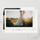 Cette carte de vacances chic est parfaite pour les jeunes mariés ! Elle comporte une seule photo accentuée en véritable feuille d'aluminium par la phrase « Mariés et joyeux » dans un script élégant avec un cœur. Les noms des mariés et la date du mariage se trouvent à droite de la photo dans cette mise en page moderne. Le verso comporte un espace pour deux photos supplémentaires et un message de vacances.