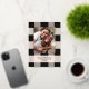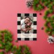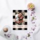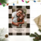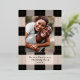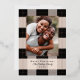 Élégant motif à carreaux noir simple avec photo de famille et véritables accents de feuille d'or rose. Personnalisez avec votre propre nom et message.
