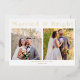 La carte de vacances parfaite pour les jeunes mariés qui se sont mariés en 2023 ! Célébrez votre premier Noël de mariage avec ce design classique, moderne et simple. Elle comporte une véritable feuille et une police serif charmante. Choisissez une feuille d'or, d'argent ou de rose gold et personnalisez-la avec votre propre message et deux photos. Votre famille et vos amis adoreront recevoir cette carte de Noël avec les mariés dans leur boîte aux lettres !