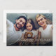 La conception de carte de vœux de vacances moderne minimaliste présente une écriture et une typographie élégantes et tendance pour les vacances les plus heureuses, avec une photo de famille personnalisée, des cartes de vœux simples et uniques.