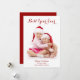 Un ruban fantaisiste rehausse la photo de votre famille sur cette carte de vacances rouge et blanche. Cette carte Meilleure Année est parfaite pour le couple nouvellement fiancé, les jeunes mariés, le 1er Noël de bébé ou toute photo ou événement spécial.