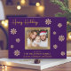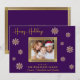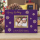 Partagez la joie de Noël avec cette superbe carte de vœux familiale. Le fond violet foncé est magnifiquement rehaussé de délicats flocons de neige dorés, créant un design festif et sophistiqué. Votre précieuse photo de famille est mise en valeur, encadrée par une bordure dorée étincelante, créant un point de mire qui irradie de chaleur et d'amour. Personnalisez la carte avec le nom de votre famille et les noms de chaque membre pour la rendre unique. L'intérieur de la carte comporte un message de Noël sincère en lettrage doré élégant, adressant des vœux chaleureux pour une période des fêtes remplie de bonheur et de gaieté. Cette carte plate personnalisable est un moyen idéal de se connecter avec les proches pendant la période la plus merveilleuse de l'année.