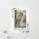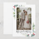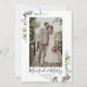 Envoyez vos vœux de vacances avec un petit message supplémentaire cette année. Cette carte de vœux de mariage avec annonce peut aider à annoncer les jeunes mariés à vos amis et à votre famille ! Idéal pour les mariages intimes, les fugues et les jeunes mariés. La carte moderne à photo unique comporte une couronne aquarelle de feuillage hivernal comprenant des branches de sapin, du houx et du poinsettia et "Mariés et joyeux" en calligraphie moderne. Personnalisez avec votre photo, votre nom et votre message au verso. Visitez notre boutique Zazzle pour voir le reste de cette collection.