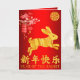 Carte de vœux de vacances rouge et or 2023 année du lapin. Effet numérique or.